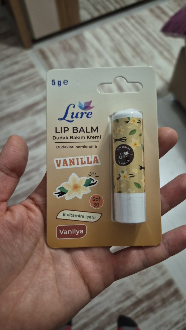 Vanilya kokulu Lure dudak balmı, dudakları nemlendirir ve E vitamini içerir. SPF 30 koruması da sağlar. Hediye geldiği ve bende aynısından oldugu için hic açılmadan satıyorum