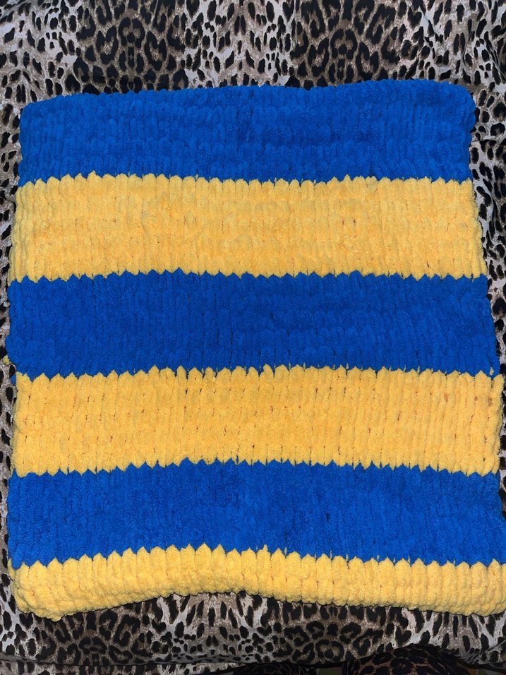 Yumuşak dokulu, koyu mavi ve sarı çizgili battaniye, sıcaklık ve konfor sağlar. istediğiniz model,renk ve boyut için lütfen ilan açtırınız.