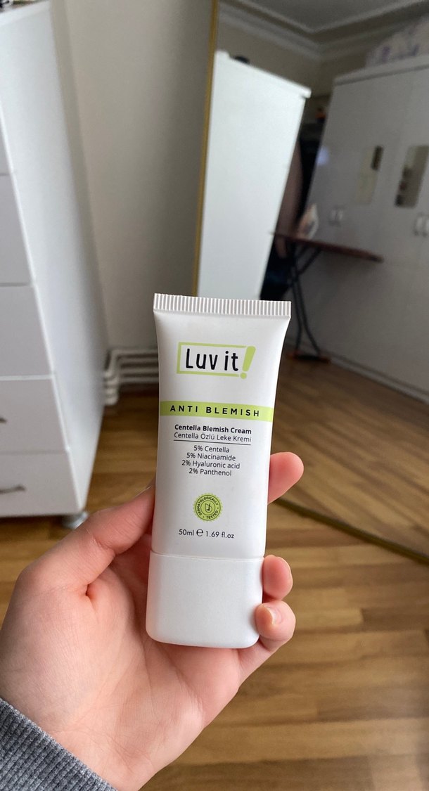 Luvit Anti-Blemish krem, %5 Centella, %2 Hyaluronik asit ve %2 Panthenol içerir. Lekeleri azaltmaya ve cildi yatıştırmaya yardımcı olur. 50ml. Ben kendimde etkisini görmedim ancak seveni var. O yüzden satıyorum.
