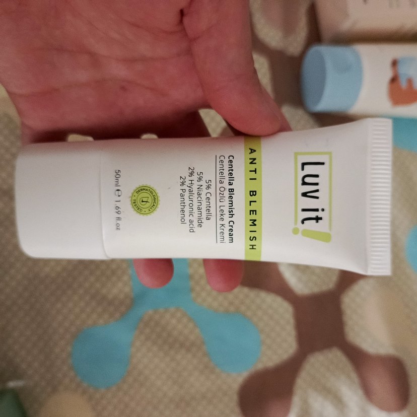 Luvit Centella Leke Kremi, %5 Centella ve %2 Panthenol içerir. Cilt lekelerini azaltmaya ve yatıştırmaya yardımcı olan 50ml'lik tüp krem. 2 kez falan kullandım..ihtiyaç fazlasıdır.