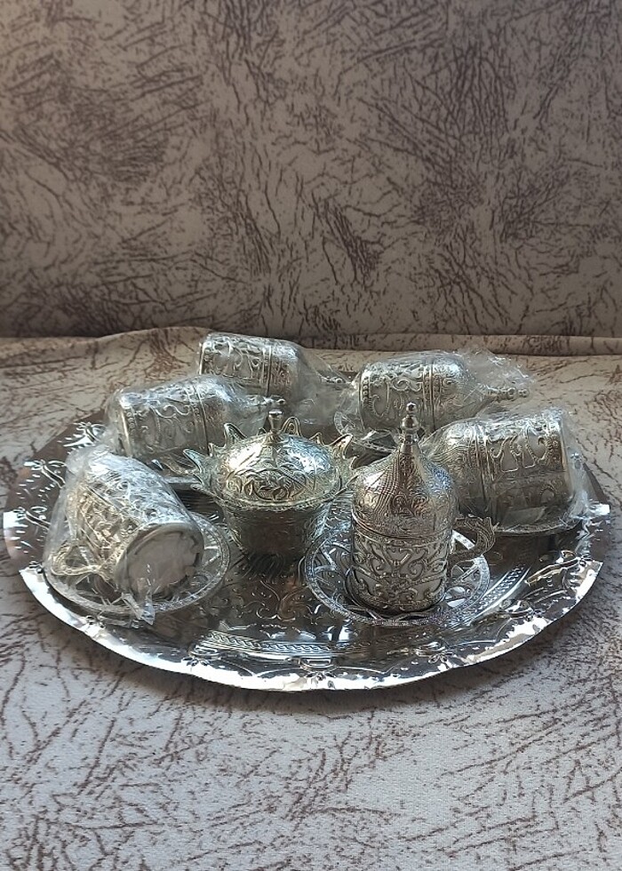 6 kişilik güzel işlemeli fincan takımı desenli ve işlemelidir tepsisinden şekerdenliğe kadar bardak altlarına kadar muazzam parçalardir alan kişiye şimdiden hayırlı olsun diger ürünler için sayfama bakabilirsiniz iyi günler dilerim.