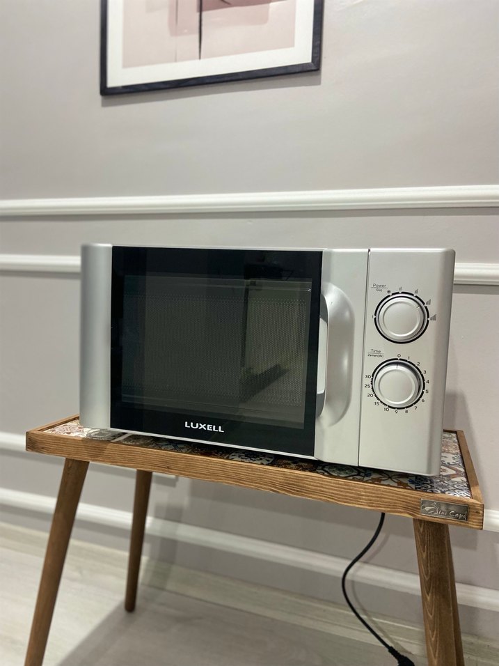 Luxell mikrodalga fırın, gri ve beyaz renklerle iki kontrol düğmesine sahiptir. Mutfakta pratik ısıtma seçenekleri sunar. ⚡