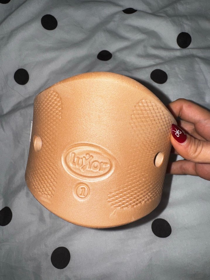 Daha iyi uyum için kavisli ve dokulu alanlara sahip açık kahverengi boyunluk. Konfor ve koruma sağlar.