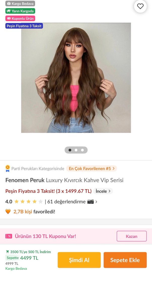 #peruk #kahve GÜNCEL FİYATI TRENDYOLDA 4500