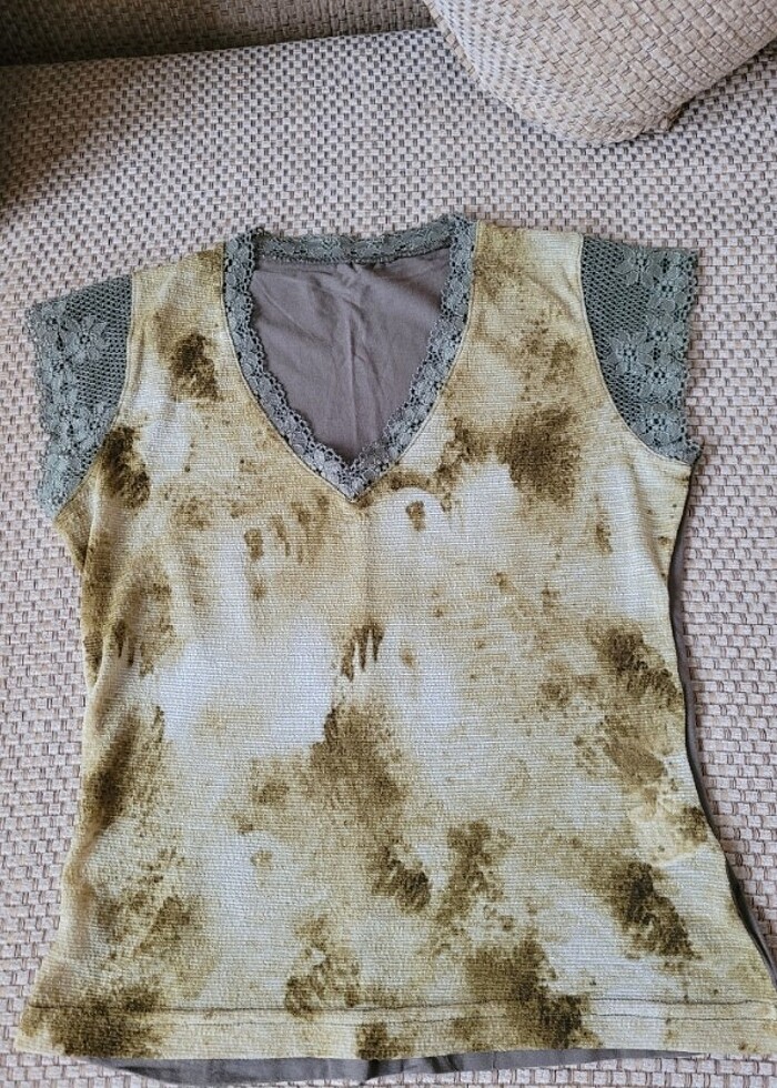 Lycralı, kalıbı güzel ve çok rahat, batik desenli dantelli Bluz