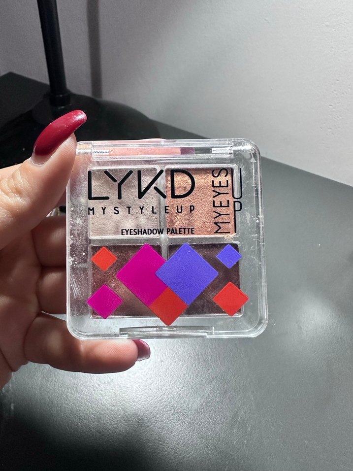 LYKD far paleti, koyu ve canlı çok renkli tonlar içerir. Şeffaf kapaklı kompakt tasarımıyla çeşitli göz makyajları için uygundur. Ürünün beyaz rengi kullanılmıstır biraz. görüldüğü gibidir bir sorunu yoktur.