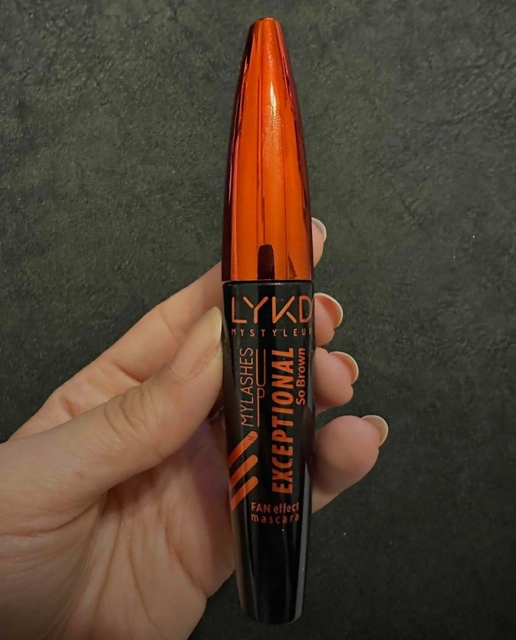 LYKD Exceptional maskara, koyu renkte ve turuncu kapaklıdır. Kirpiklere fan etkisi sağlar. Ambalajda YS harfleri bulunur.