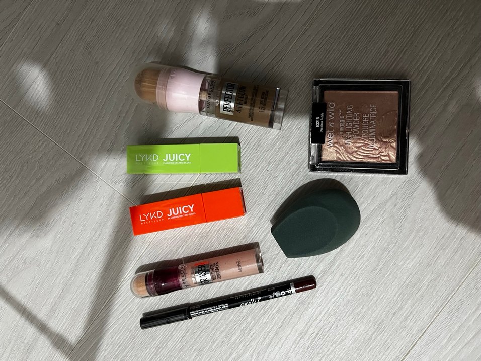 LYKD Juicy makyaj seti, açık haki renkte aydınlatıcı ve temel makyaj araçları içerir. Yumuşak karıştırma süngeri ve hassas uygulama için eyeliner kalemi bulunur. Canlı ambalajda sunulur. ✨