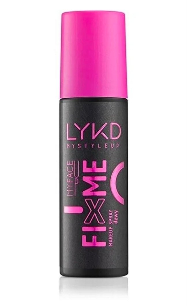 LYKD HYSTYLEUP makyaj sabitleyici sprey, renkli pembe şişede, makyajın tazeliğini ve kalıcılığını sağlar.