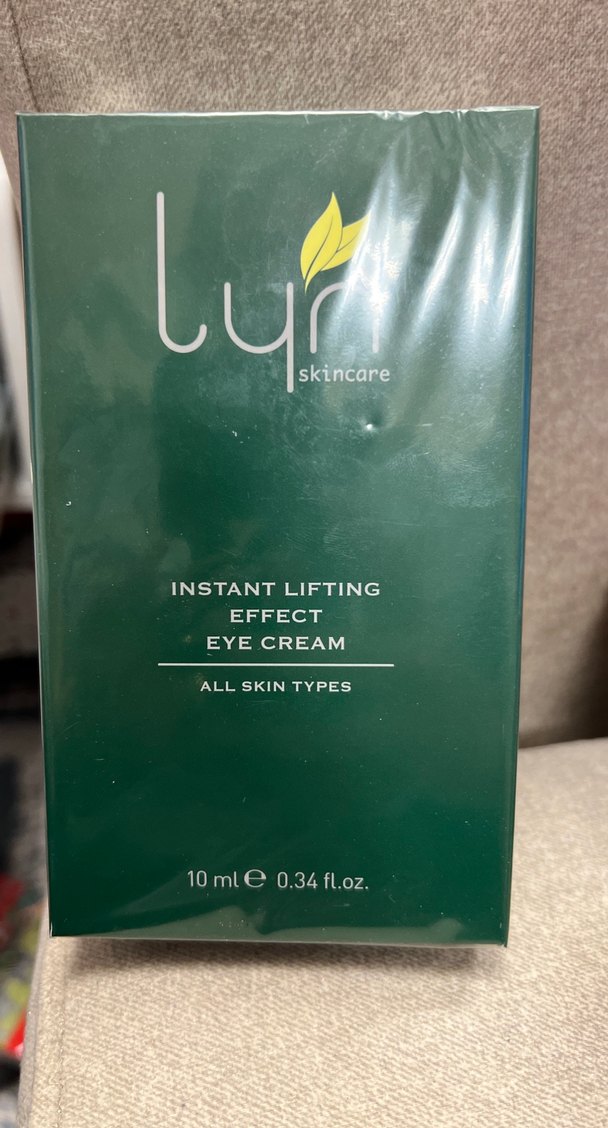 Lyr Skincare markasına ait, tüm cilt tiplerine uygun anında kaldırıcı etkiye sahip 10 ml göz kremi.