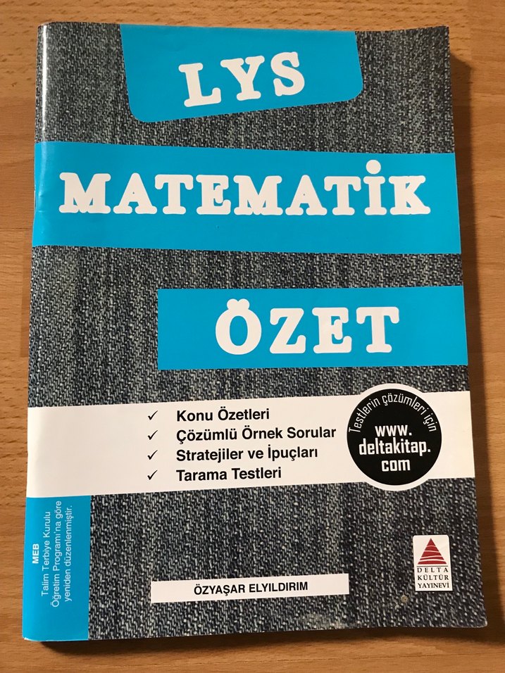 LYS Matematik özet kitabı; konu özetleri, çözümlü örnek sorular, stratejiler, ipuçları ve tarama testleri içerir. Hiç kullanılmamış.