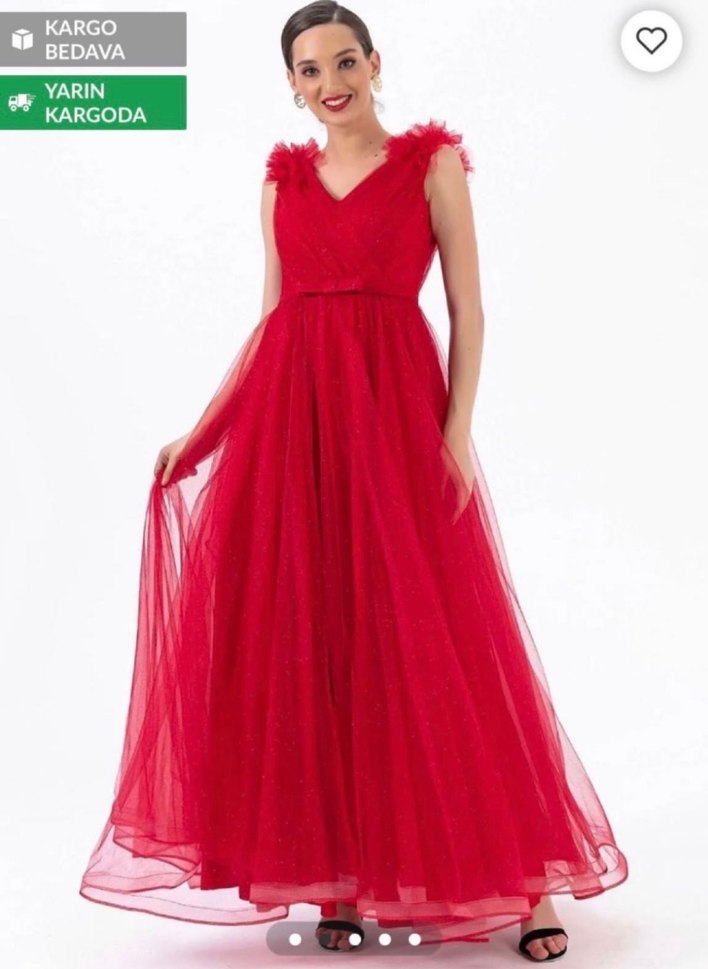 M 38 Kadın Kırmızı Uzun Abiye Elbise V Yaka