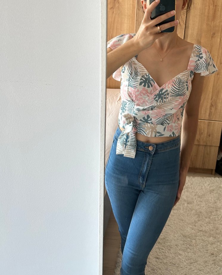 Olalook M beden çiçek desenli crop bel kısmı genişlik 35cm omuzdan aşağı 40cmdir. Sadece bir kez giyilmiştir.