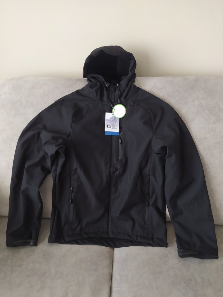 Erkek siyah kayak ceketi kapüşonlu, uzun kollu ve dar kesimlidir. Fermuarlı cepleri vardır ve yumuşak, sıcak kumaştan üretilmiştir.