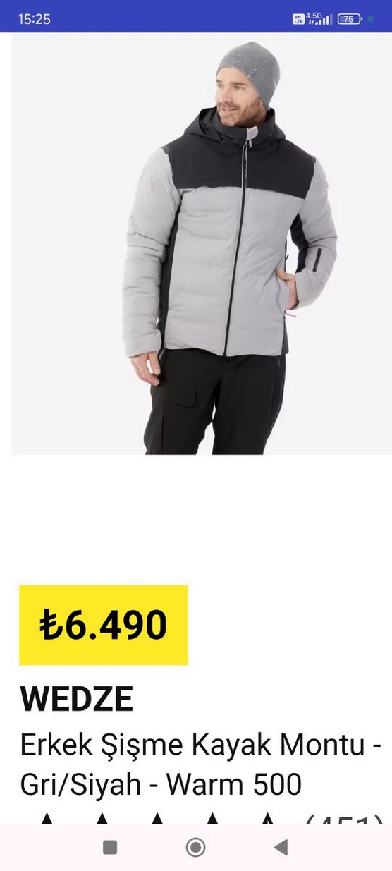 WEZDE şişme kayak montu M.beden warm.500/su geçirmez sıcak tutar gri.siyah sıfır etiketi üzerinde