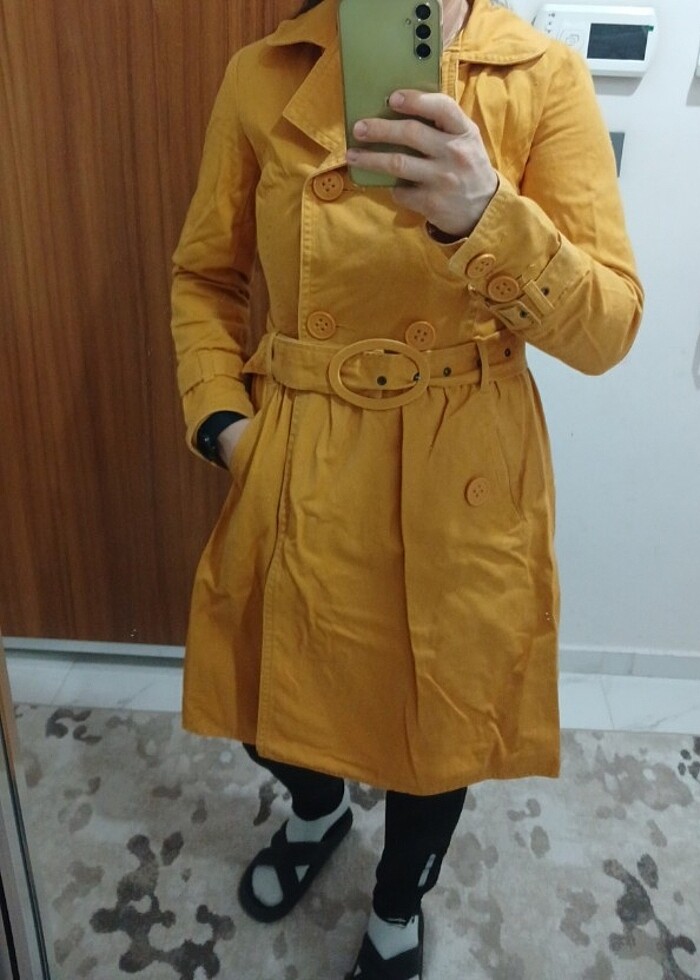 M beden hardal rengi keten içi astarlı trenckot