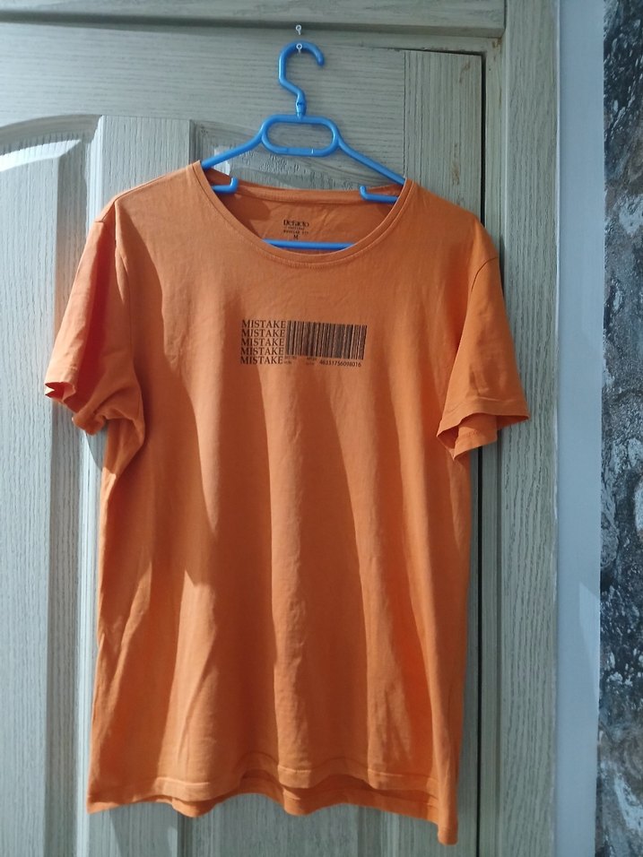 M bedene uyumlu Canlı turuncu pamuklu kumaştan, baskılı barkod ve yazı detayıyla bol kesim kısa kollu tişörtü. Rahat ve günlük kullanım için uygun.