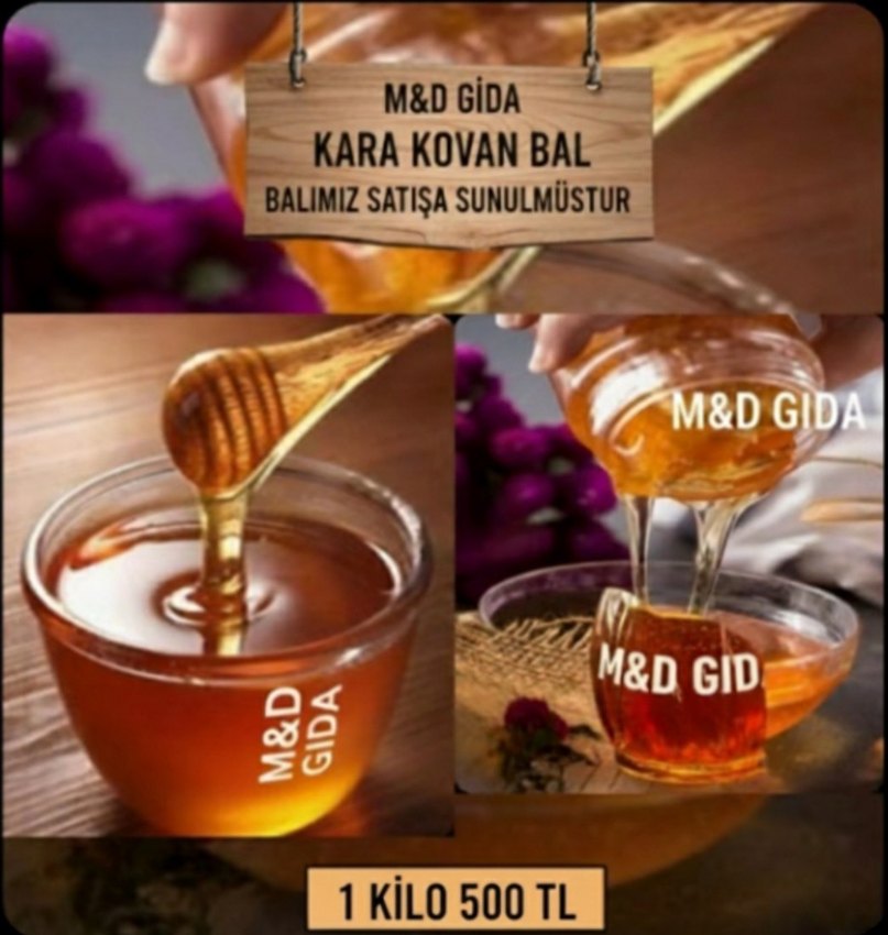 M&D Gıda'nın doğal Kara Kovan Balı satışta. 1 kilogram fiyatı 500 TL'dir.