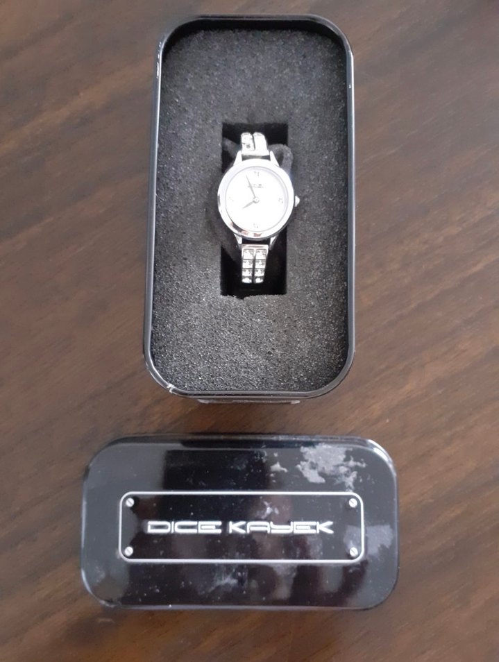 Taşlı kadranlı, tokalı bilekli kadın kol saati. Minimalist ve çağdaş tasarım Dice Kayek şık kutusunda. Az kullanıldı, çizik yok. İyi durumda.⌚