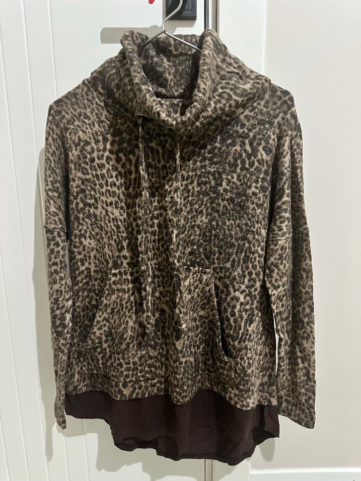M/L uyumlu,Yüksek Yakalı Leopar Desenli kazak