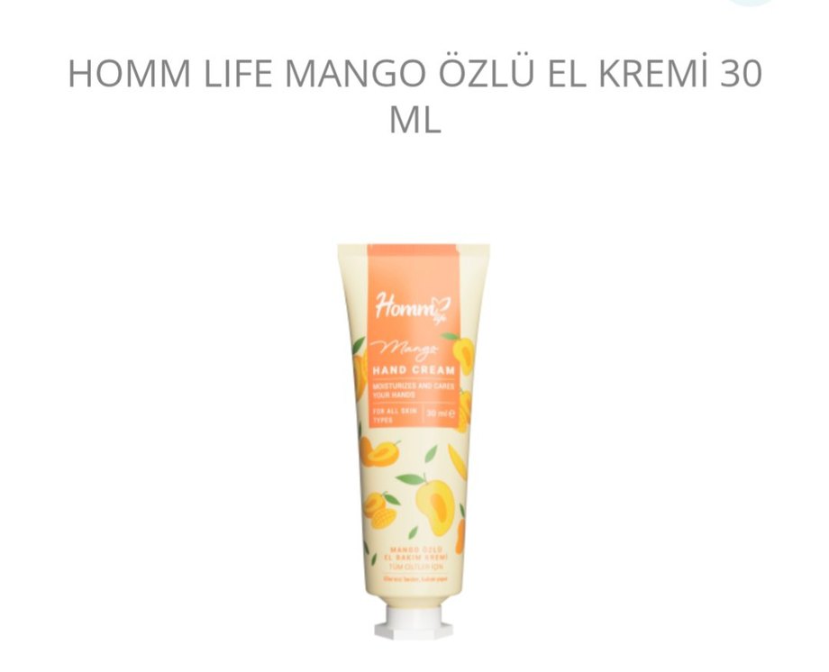 M Life mango özlü el kremi, tüm cilt tipleri için nemlendirir ve bakım yapar, ferah mango kokusuna sahiptir.