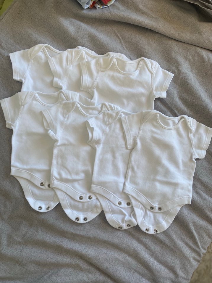 M&S beyaz kısa kollu bebek body, yuvarlak yaka, hassas cilt için düz dikişler ve kolay giydirme için nikel içermeyen çıtçıtlar içerir. Yumuşak ve rahat kumaş. Çok sayıda body olduğu için bazıları hiç giyilmedi yeni gibi