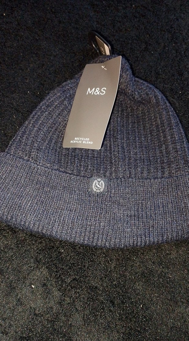 M&S markalı gri örgü yün kadın bere, rahat ve trend sokak stili sunar. Yumuşak dokusu ve zarif logo detayıyla günlük kullanıma uygundur.