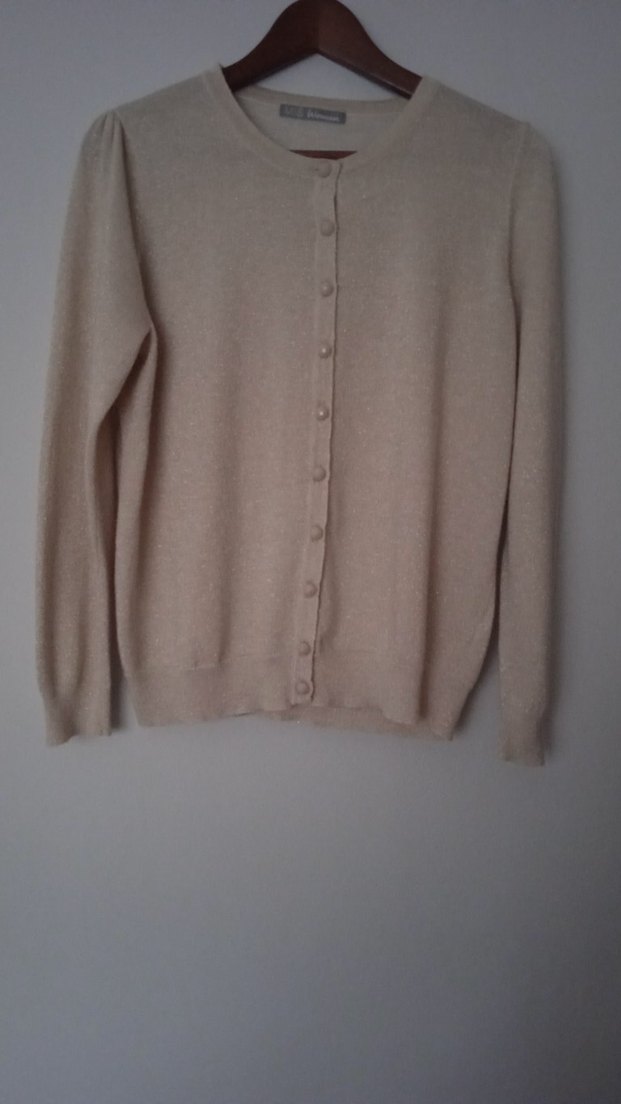 M&S marka simli triko bluz.M beden.Yumuşak ve şık olduğu kadar zarif bir duruşu var.Çok az kullanılmıştır ve iç etiketi rahatsız ettiği için kesilmiştir.Ölçüleri Omuz 38, iki koltuk arası 53, omuzdan kol uzunluğu 60 omuzdan uzunluğu 60cmdir.