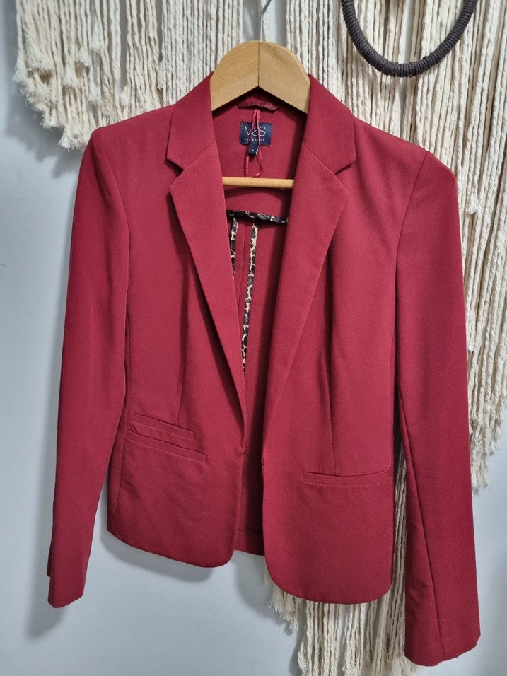 M&S Marka Bordo Kadın Ofis Blazeri, Normal Boy