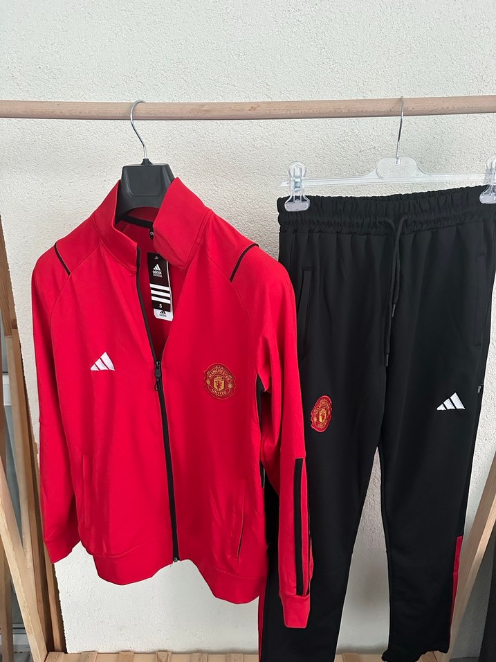 Scuba dalgıç kumaş içi ince polarlı kırmızı fermuarlı, uzun kollu, yuvarlak yakalı, siyah pantolonlu eşofman takımı. Rahat ve sıcak kumaş, sportif tarz için uygun