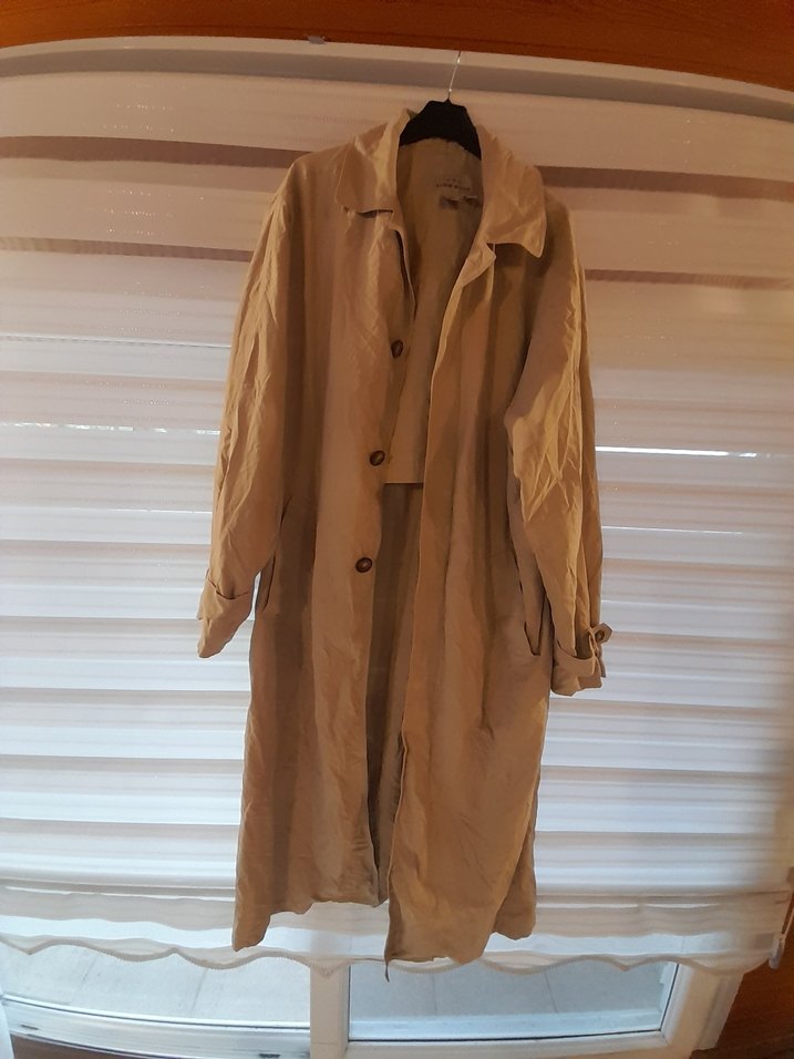 m ve l olur Bej keten uzun trençkot, bol kesim, yakalı ve drapeli tasarıma sahiptir. Uzun kollu, hafif renkli, günlük ve sokak stiline uygundur. çok foxyonlu bir mont iç taraftan sırtında fermuarı var kendi cante gibi olup muntu içine alıyor yurt dışından geldi coook uygun bir fiyata verecem marka aynı zamanda hava rüzgar yağmur geçirmez