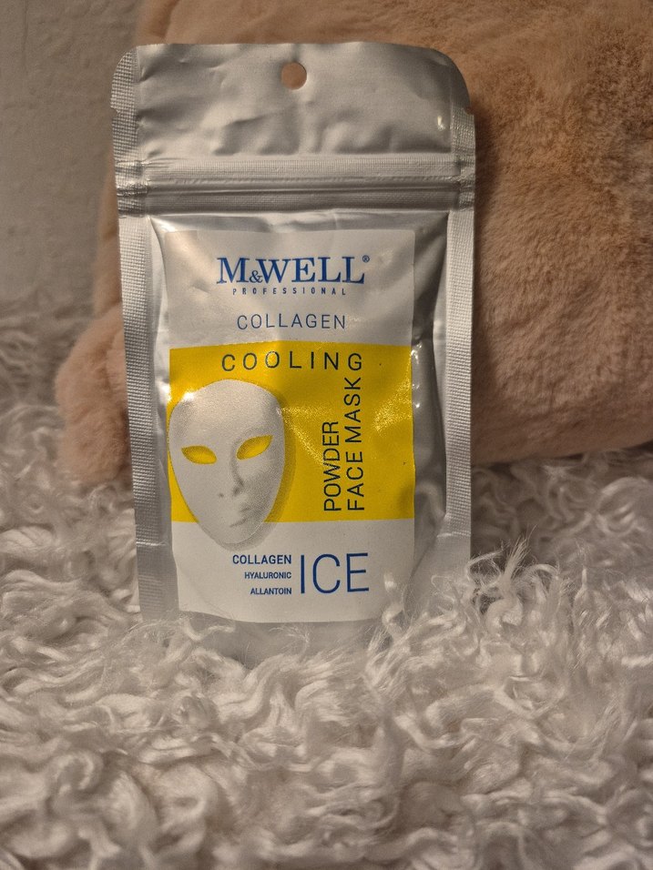 M&WELL profesyonel kollajen toz yüz maskesi, soğutucu etkilidir. Kollajen, hyaluronik asit ve allantoin içerir, cildi ferahlatır ve nemlendirir. ❄️