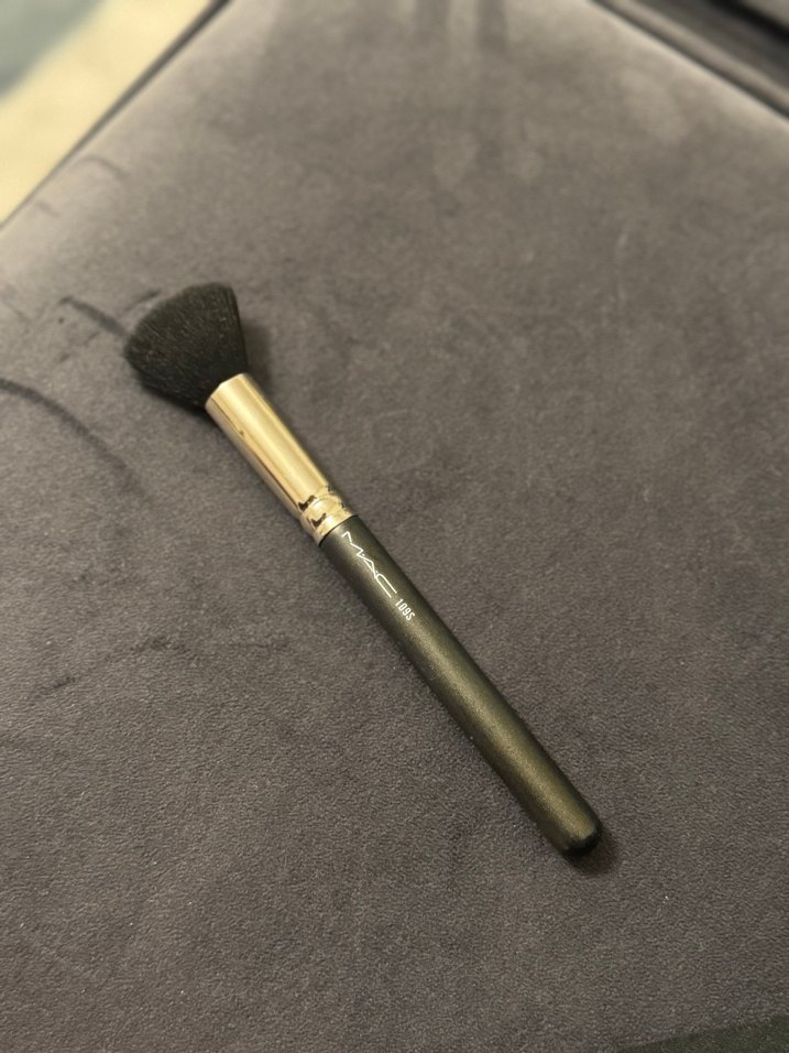 Yumuşak, açılı kıllara sahip siyah makyaj fırçası, hassas uygulama için sağlam saplıdır. Hiç kullanılmadı ihtiyaç fazlası. Orijinal mac mağazasından alınmıştır.