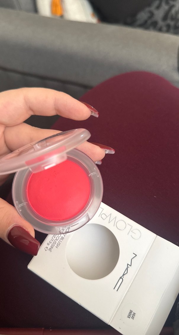 MAC markasına ait, canlı kırmızı renkte, kompakt kutuda allık. Yanaklara taze bir renk katmak için ideal. Yeni aldım kargodan yeni geldi rengi pek benlik durmadı iki kez dokundum