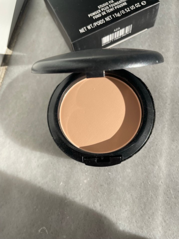 Mac bej renkte kompakt pudra, doğal mat bir görünüm sağlar. Şık siyah kapaklı kutuda sunulur.