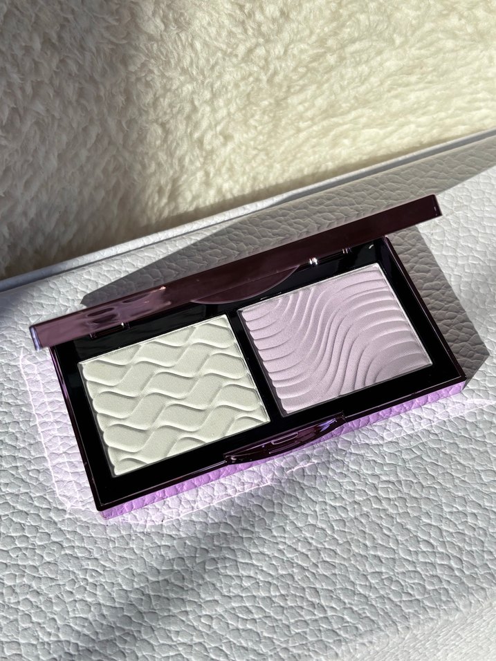 Beyaz kapatıcı ve açık lavanta aydınlatıcıdan oluşan, dokulu yüzeylere sahip palet, cildi aydınlatır ve eşitler. ✨