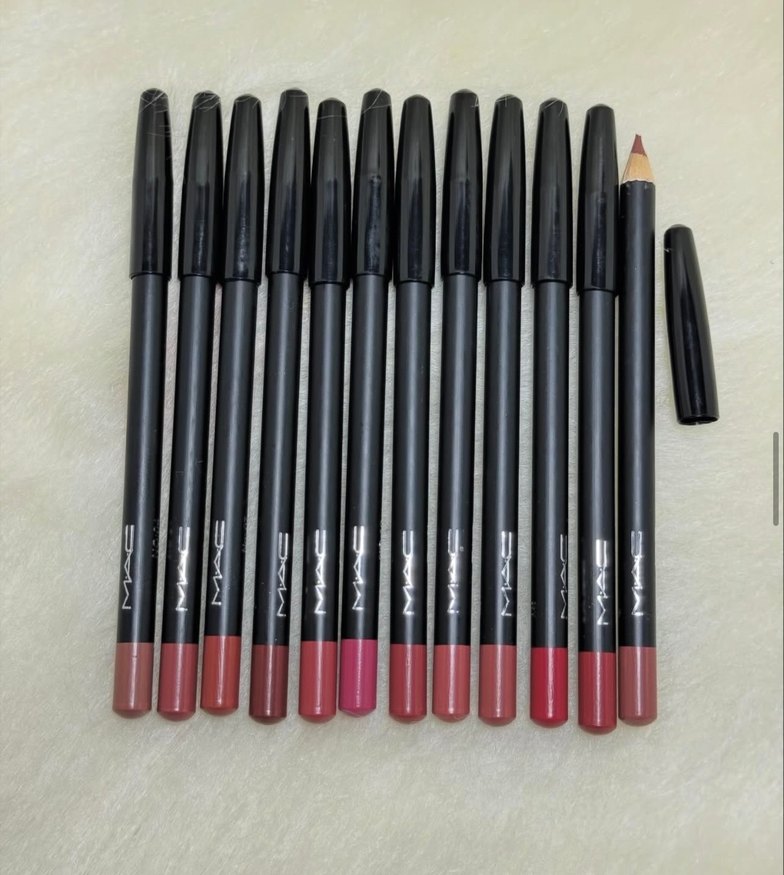 MAC markasına ait koyu kırmızı dudak kalemleri seti, çeşitli kırmızı tonlarında hassas dudak çizgisi sağlar.