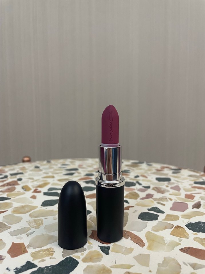MAC markasına ait, koyu bordo renkli ruj. Yoğun renk ve pürüzsüz uygulama sağlar.