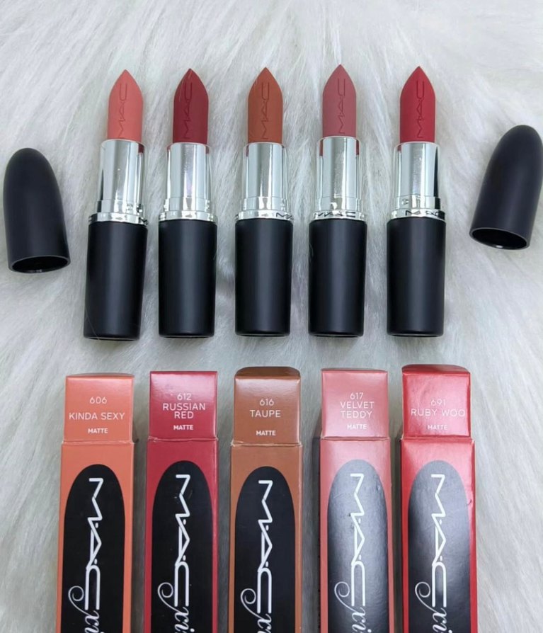 MAC mat ruj, koyu bej tonunda 'Kinda Sexy' renk, pürüzsüz ve kalıcı bir uygulama sunar.