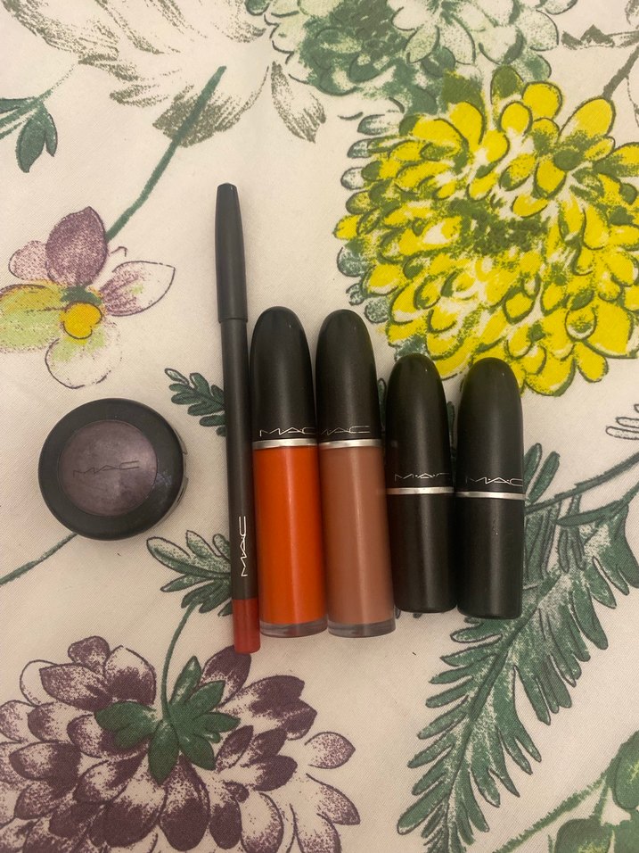 MAC markasına ait mat bitişli koyu ve haki tonlarında ruj ve dudak kalemi seti. Cesur makyajlar için uygun bir ürün seti.