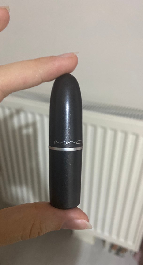 MAC markasının koyu bej tonunda mat rujudur, yoğun renk ve pürüzsüz sürüm sağlar.