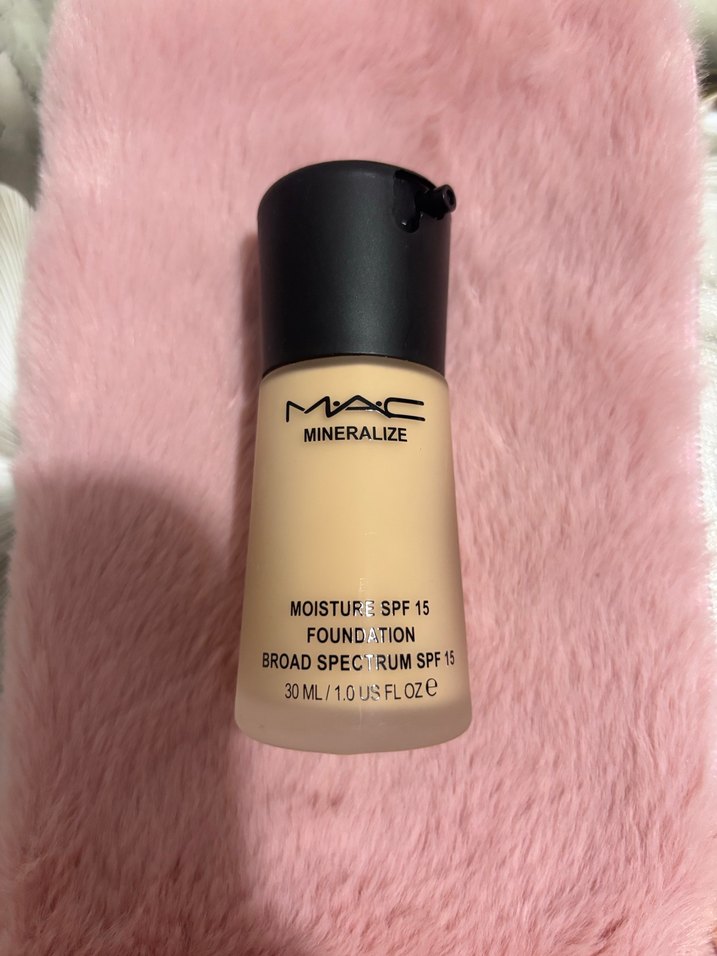 MAC Mineralize fondöten, SPF 15 geniş spektrum koruma sağlar ve 30 ml şişede nemlendirir. Pastel bej rengindedir.