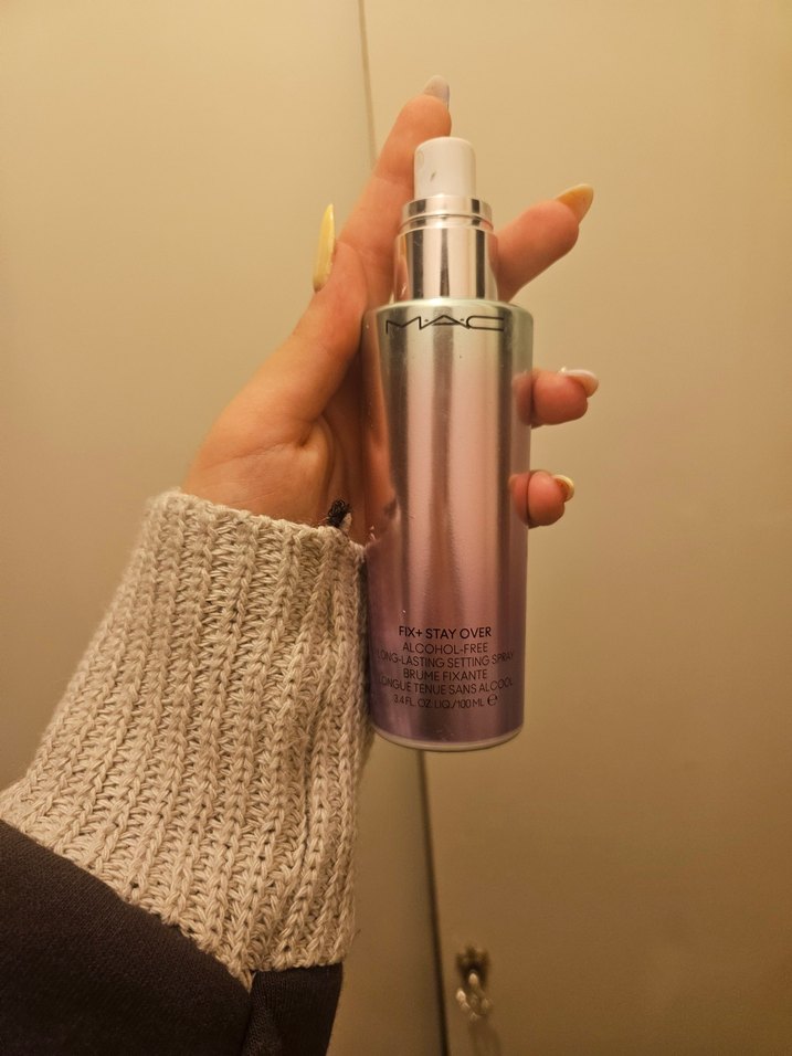 MAC Fix+ Stay Over parlak bej şişede, makyajı uzun süre sabitleyen hafif etkili bir makyaj sabitleyici spreydir.