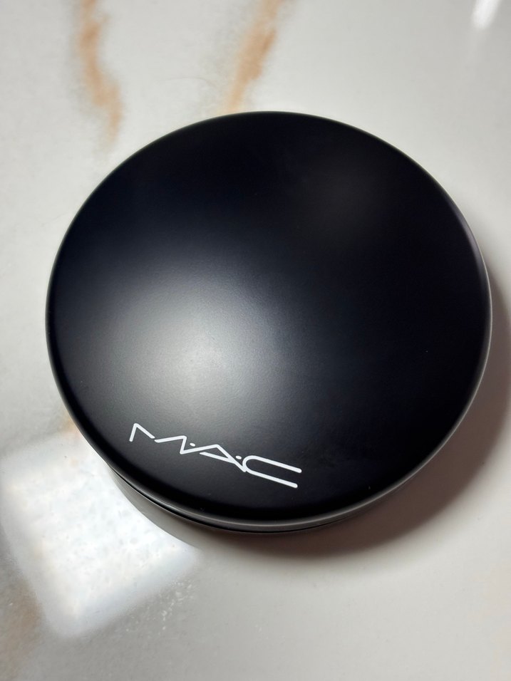 MAC markasına ait siyah kompakt kutuda koyu tonlu pudra. Makyaj sabitlemek için uygundur.