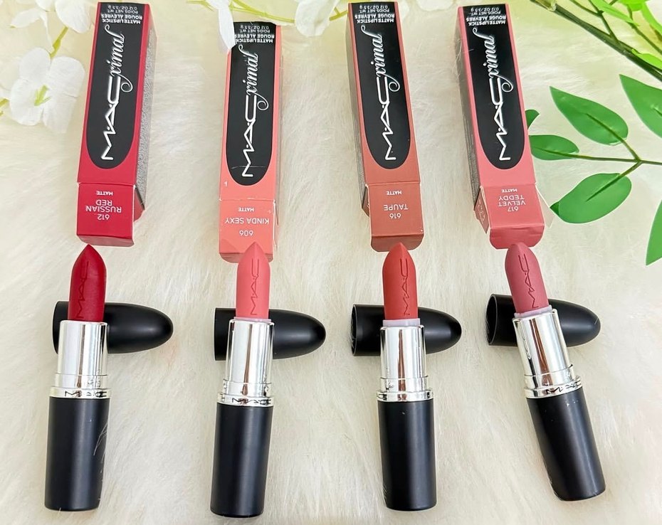 MAC markasının canlı pembe tonlarında, mat bitişli, zengin renk sunan ve kolay sürülen rujları.