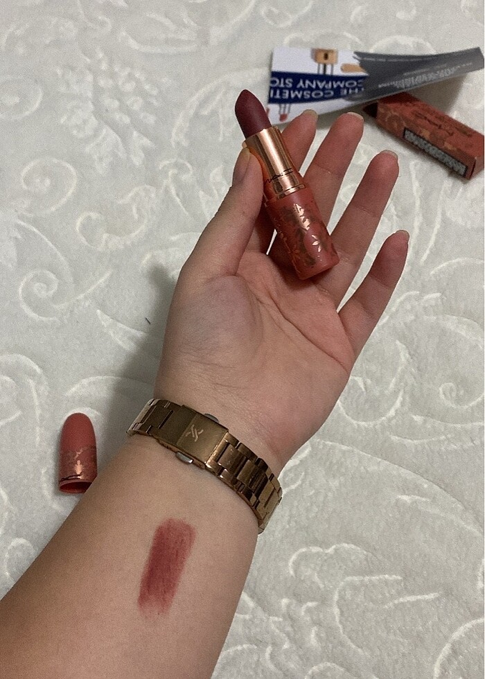 Koleksiyon ürünü bi kere dudağa bi kere ele swatchlandi