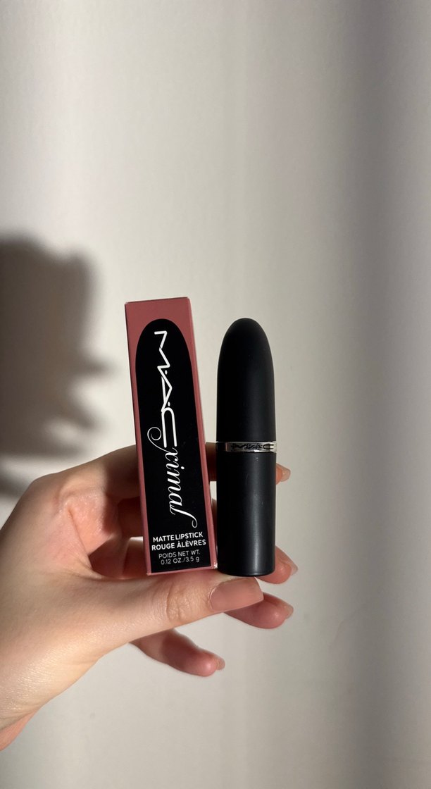 MAC mat ruj, derin siyah renkte, yoğun renk ve pürüzsüz bitiş sağlar.