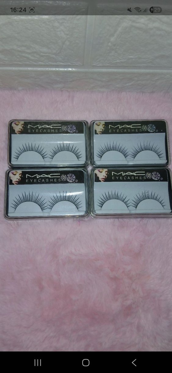 Bej renkli, renkli ve canlı görünüme sahip MAC sahte kirpikler. Hafif ve doğal görünümlü kirpikler pakette.