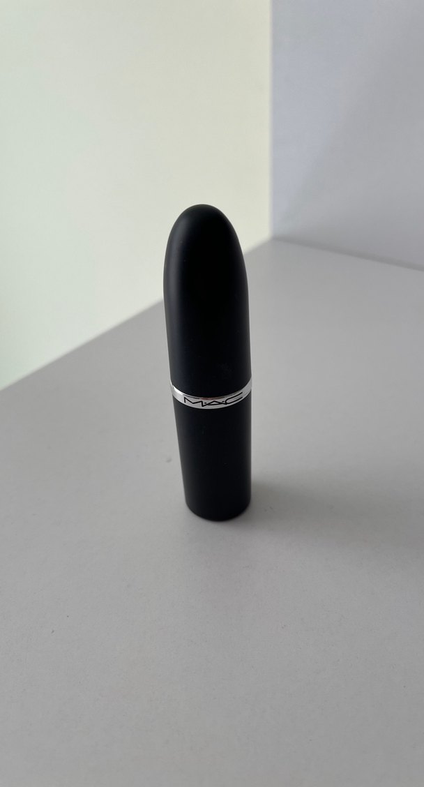 MAC ruj, siyah tüpte, koyu ve canlı renk sunar, cesur dudaklar için idealdir.