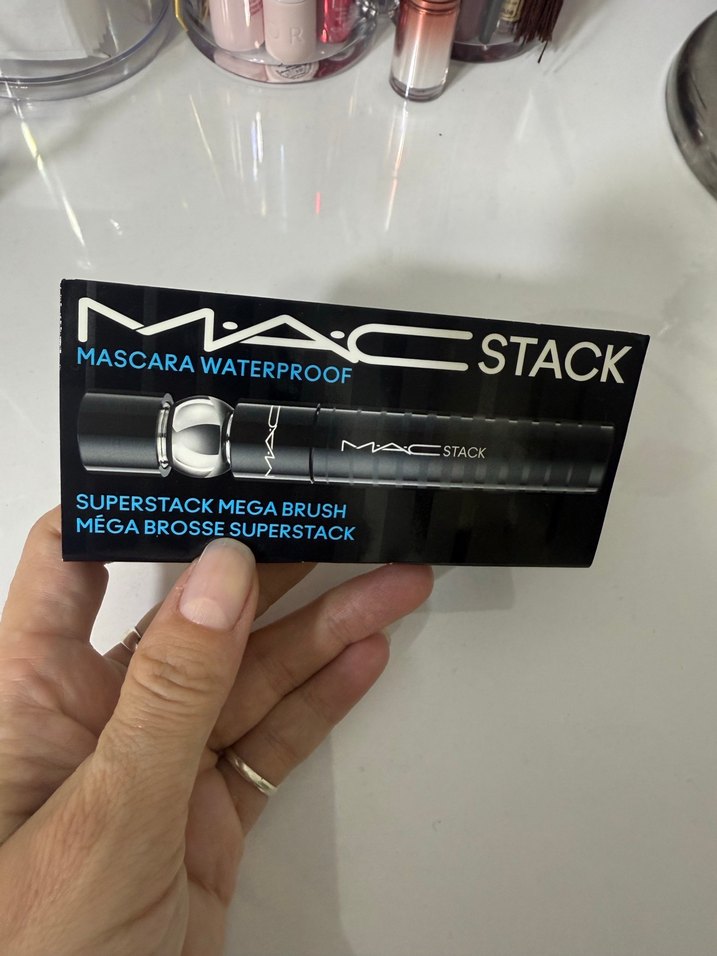 MAC Stack siyah maskara, suya dayanıklı formülü ve mega fırçasıyla yoğun hacim ve kalıcı kullanım sağlar.